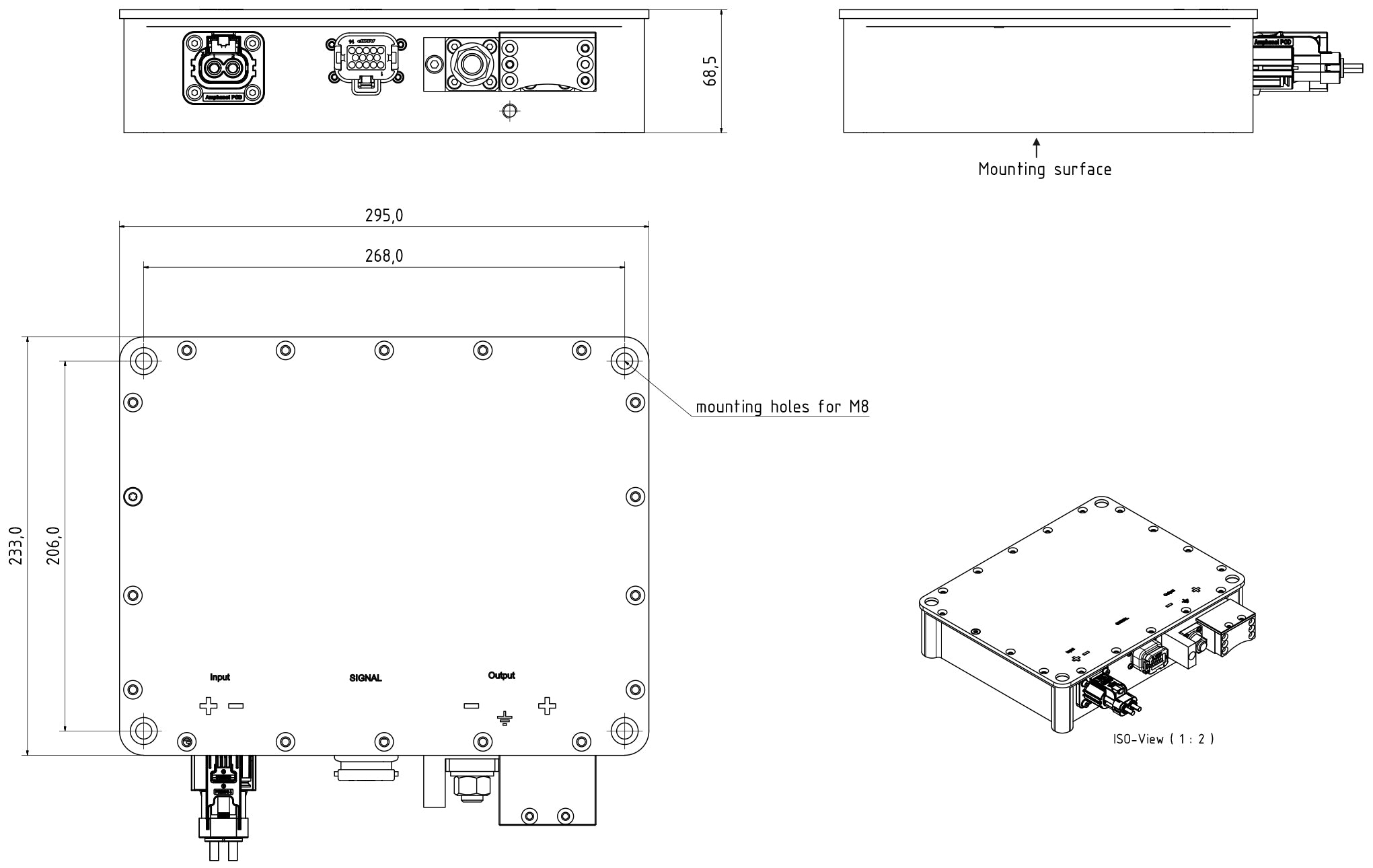 | Dimensions (LxWxH) | 295 x 233 x 68,5 mm | without connections, see fig. 8.1 |